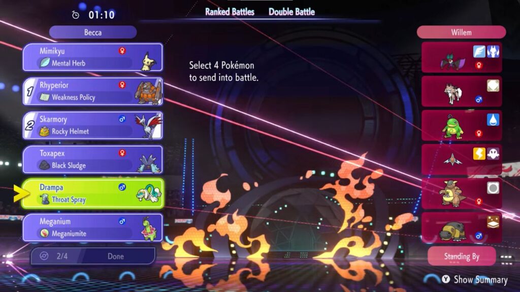 - Double Battle → bring 4 out of 6 Pokemon