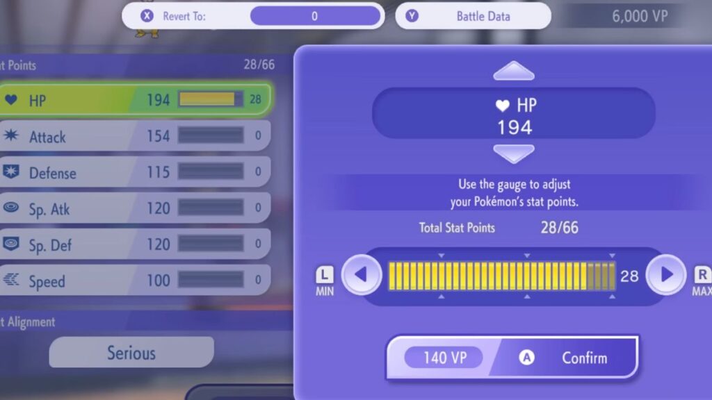 Adjusting individual stat points costs about 50 VP per stat. This lets you fine-tune your Pokemon's stats to maximize offense, defense, or speed depending on your battle strategy.